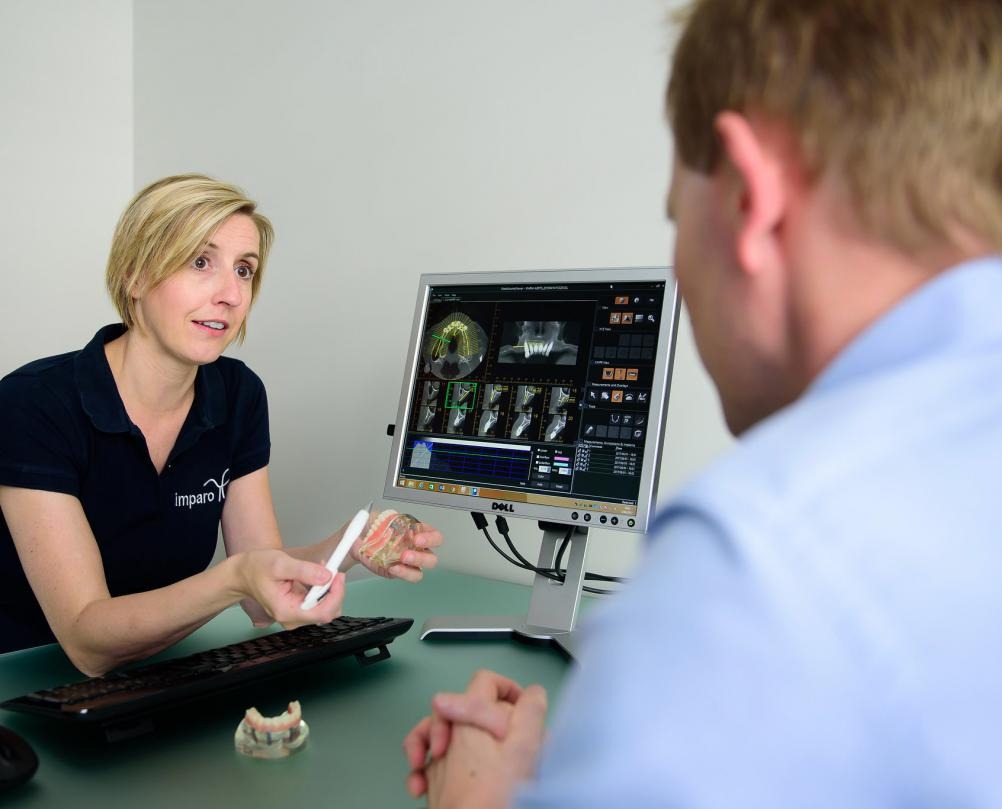 Implantaten plaatsen is een technisch hoogstaande en dus dure behandeling. Er is dan ook een grondig vooronderzoek nodig om tot een goed behandelplan te komen, aangepast aan de noden en wensen van de patiënt. Een grondig mondonderzoek wordt uitgevoerd tijdens een eerste raadpleging. Eventueel worden er radiologische beelden genomen. Een gedetailleerde kostenraming wordt overlopen met de patiënt. Soms is het nodig om via extra radiologisch beeldmateriaal het volume en de kwaliteit van het bot te evalueren. De patiënt wordt dan naar het ziekenhuis gestuurd om een Cone Beam CT te laten nemen.